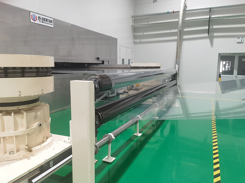 1. PET shrink film, mainly used as a base film for environmentally friendly shrink label printing and other purposes. The production workshop production line is designed by Shandong Yongjian for PET casting and stretching production lines, equipped with German slitting machines and online detection systems.